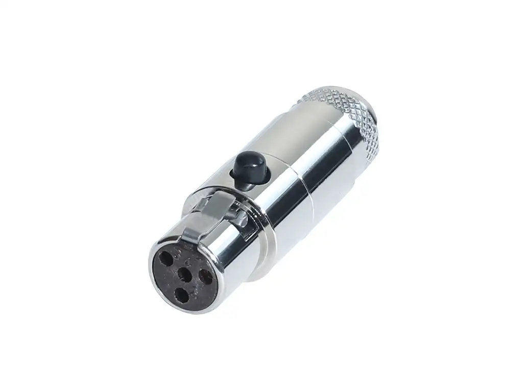 4 pole female cable connector with nickel or black housing; contacts of gold or silver;nickel metal cap