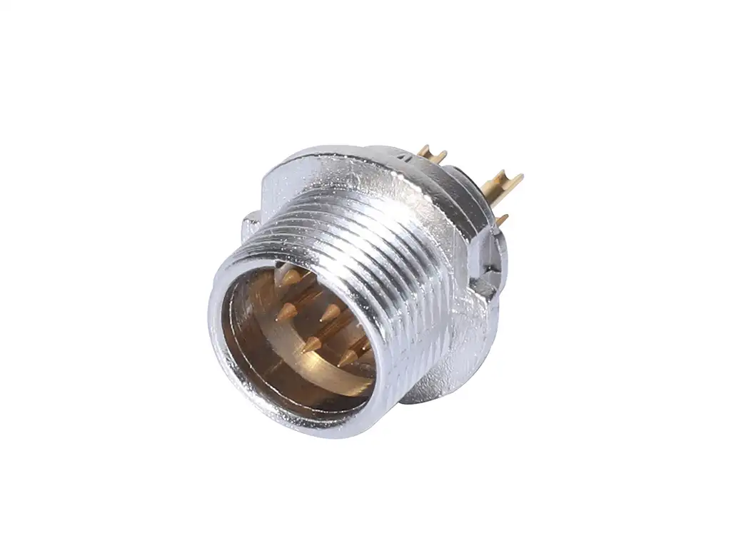 7 pole male chassis connector panel mount, contacts of gold, solder cups