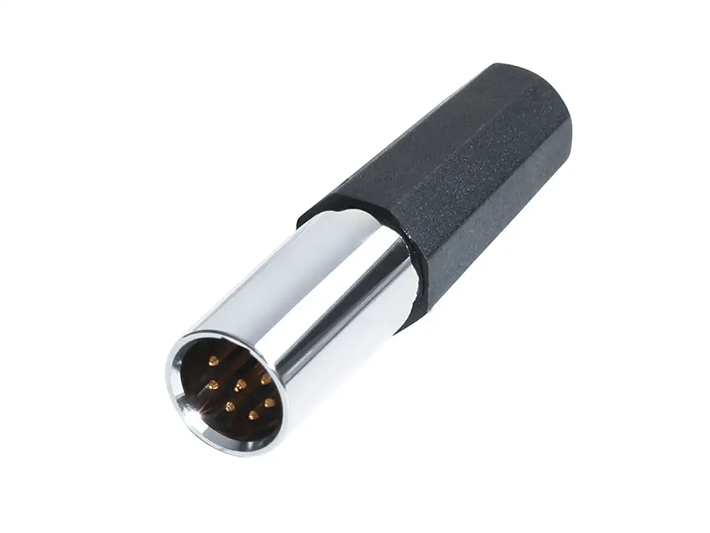 7 pole 公頭電纜連接器,鎳或黑色外殼;金或銀觸點;黑色塑膠尾套