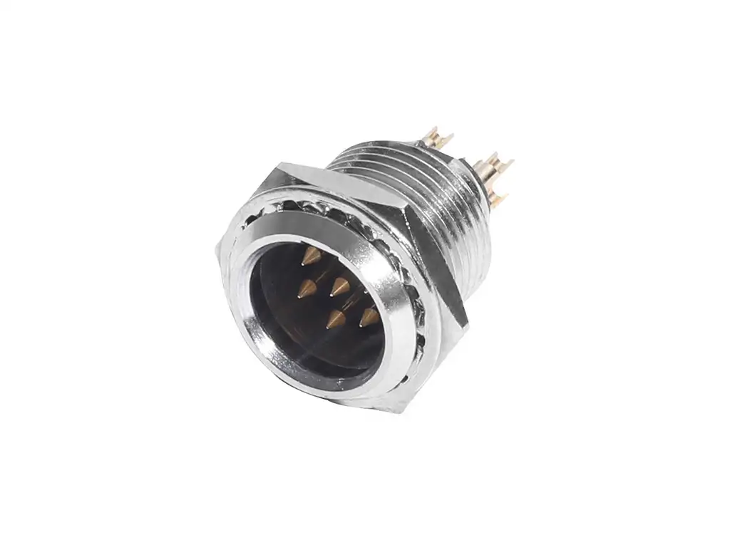 6 pole 公底盤連接器面板安裝,金觸點,焊杯