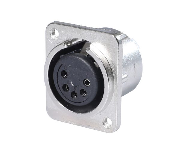 5 pole XLR母插座、焊杯、鎳外殼、金或銀觸點、保持彈簧而不是閂鎖、M3 螺絲孔